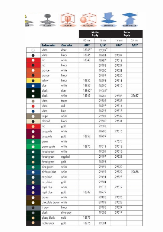 We provide many standard basic colors of Engraving Plastic Substrate, Solid Colors