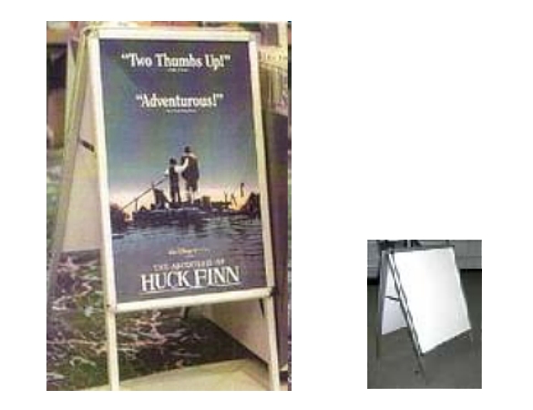 Flat Base Sign Hardware. This sign display has a sturdy steel frame and narrow